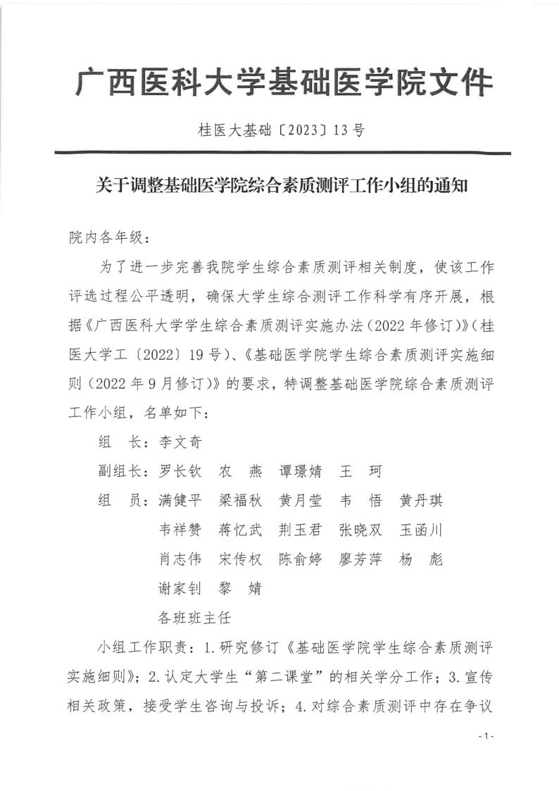 关于调整开车漫画 综合素质测评工作小组的通知