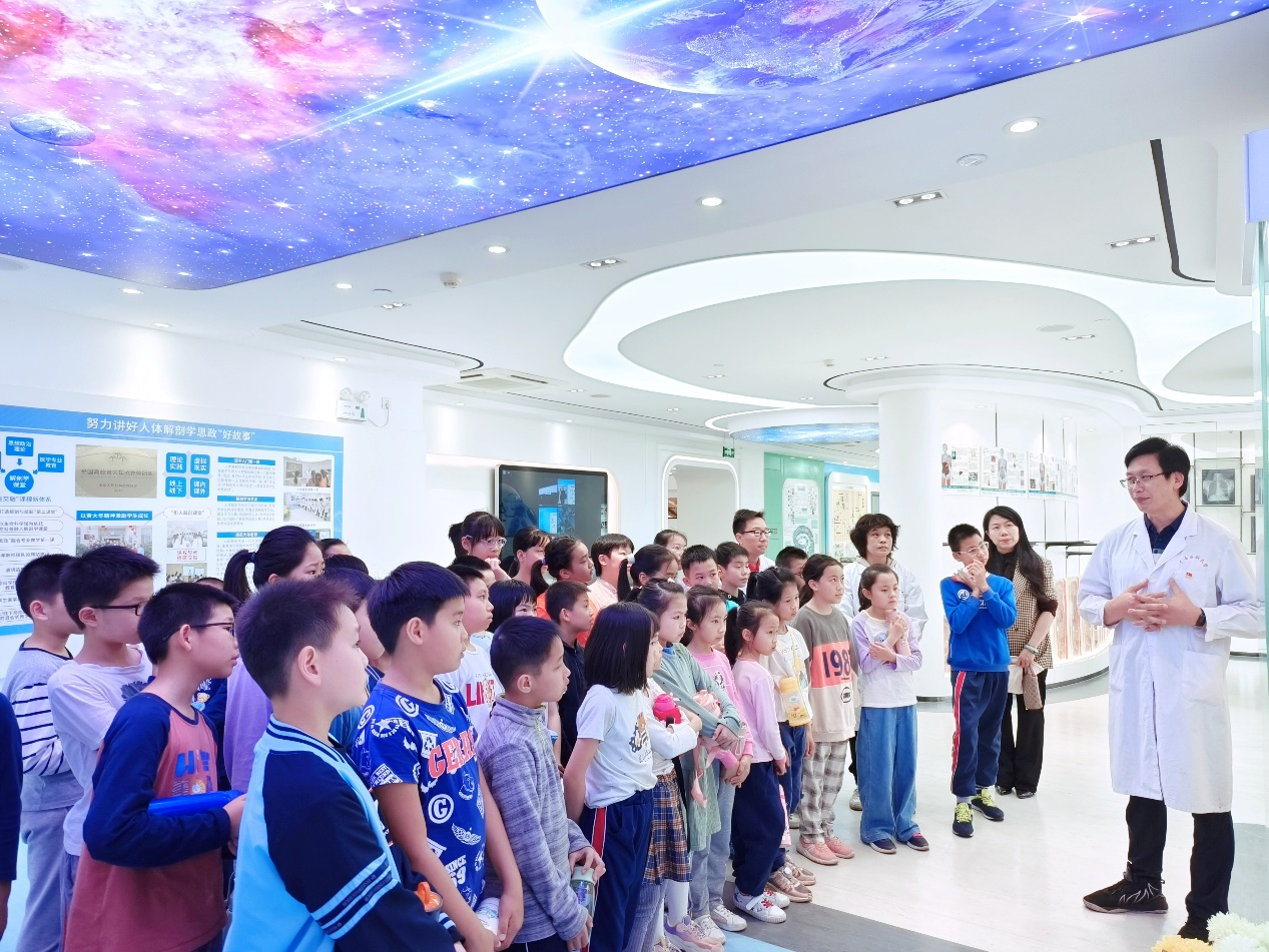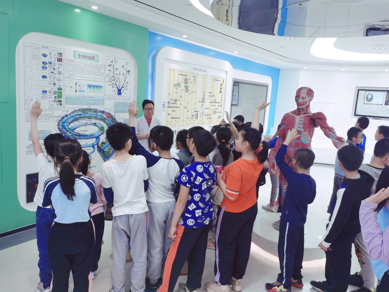活动中,支部书记磨洁琳、副书记玉洪荣、组织委员薛昌强和纪检委员黄丽仟向带队的李德校长和班主任陆老师介绍了生命科学馆的基本情况,并按照“生命起源”、“十月怀胎”、“千年遗骸”、“人体构造”、“三维断层”和“大爱无疆”的顺序,为孩子们提供了生动的讲解。同学们学到了许多关于生命科学的知识,不仅认识到地球对生命诞生和延续的重要性,也了解到我们是如何来到这个世界的,更被生前志愿支援边疆、逝世后无私捐献遗体的天津医生郭德林爷爷所深深感动。参观结束后,同学们纷纷表示,要用实际行动爱护地球、呵护生命、感恩父母,把更多的爱奉献给世间,就是对生命最大的敬畏。