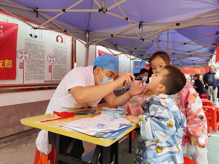 图为开车漫画 附属武鸣医院义诊团队为居民提供义诊服务