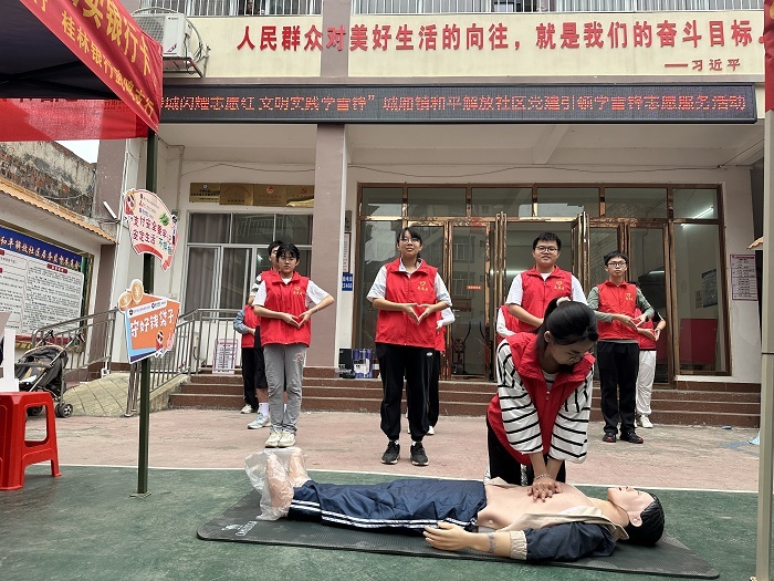 志愿者们积极协助老师,向居民们耐心普及口腔卫生、乙肝预防等相关知识。通过模型示教,志愿者们向居民们讲解了心肺复苏术、海姆立克急救法等急救方法的主要步骤及注意事项,并开展急救情景模拟,邀请在场居民进行体验。本次活动还向居民们普及了有利于健康的“心肺复苏操”等相关知识,将心肺复苏操与舞蹈表演创意结合编排,在进行活力表演的同时,还能将心肺复苏知识传播给居民,收获了居民的一致好评。