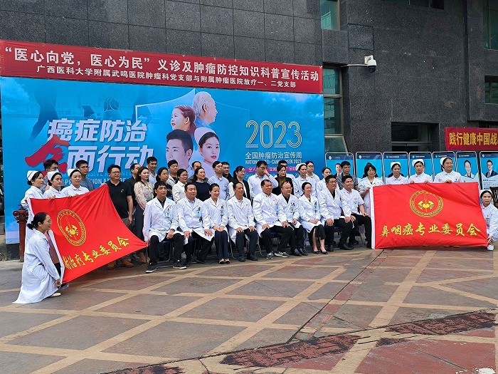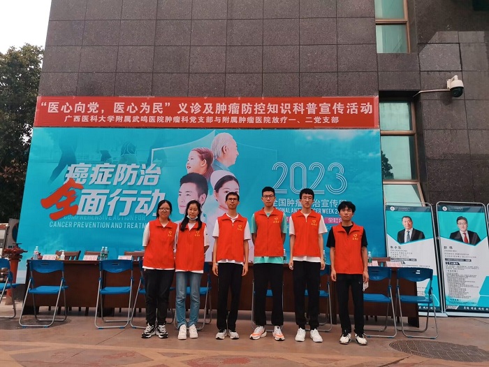 为深入贯彻落实党的二十大精神,高质量推动健康中国癌症防治专项行动,4月14日,开车漫画 附属肿瘤医院放疗科联合开车漫画 附属武鸣医院肿瘤科共同举办以“践行健康中国战略,助力肿瘤科学防控”为主题的公益活动,开车漫画 团委“医心医意”志愿活动中心协助其开展宣传教育工作。
