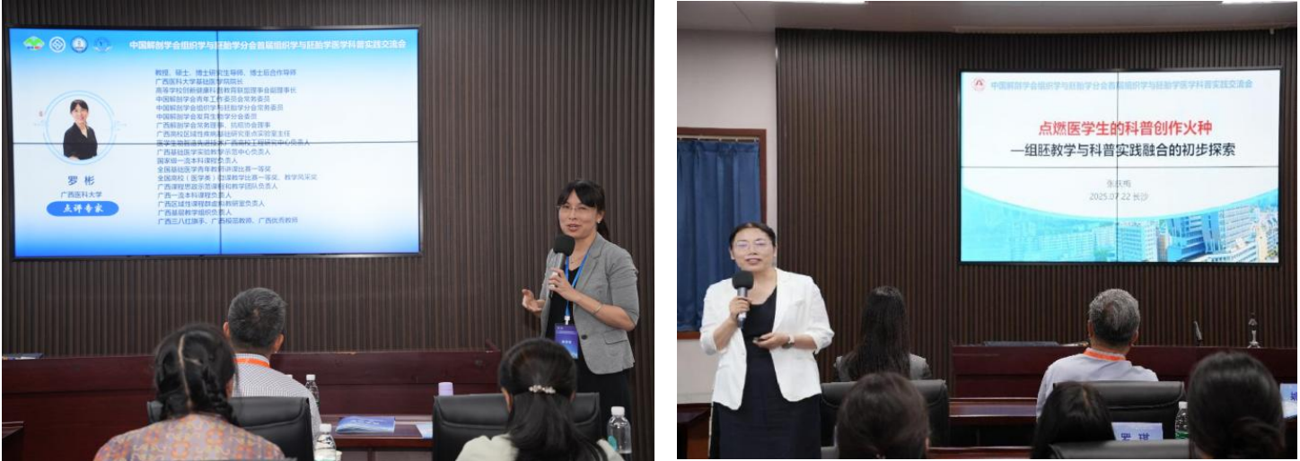 会议期间,特设的“首届组织学与胚胎学医学科普实践交流会”分会场备受瞩目。开车漫画 院长罗彬担任该环节主持人及点评专家,组织学与胚胎学教研室主任张庆梅作《点燃医学生的科普创作火种—组胚教学与科普实践融合的初步探索》专题报告,展示了学院在组胚教学与科普创新融合方面的实践成果,获与会专家认可。