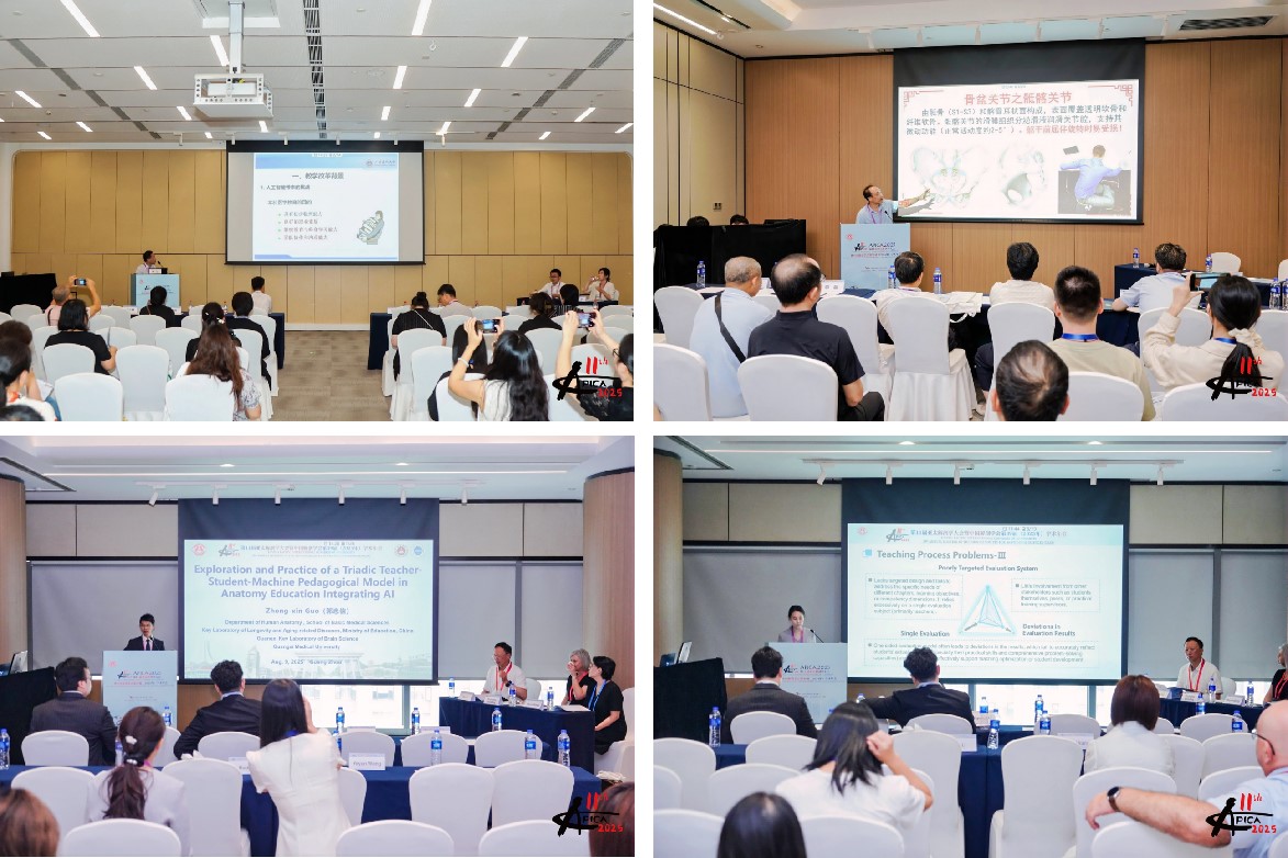 本次大会共设置了6个英文专题论坛和23个中文专题论坛。会议期间,罗国容教授、谢小薰教授、谭国鹤教授受邀参会,韦力教授、刘鹏教授分别作题为“小组成绩分工法教学(STAD)在人体解剖学实验教学中应用及评估”、“从骨正筋柔的因果辩证浅议下腰痛的诊治思路”的专题研讨会报告;人体解剖学教研室青年教师郭忠信、夏爽以英文口头报告形式向国际同行介绍了解剖学教改新举措和新成效。通过这些,展示了我校在解剖学领域的教育成果和学术风采。